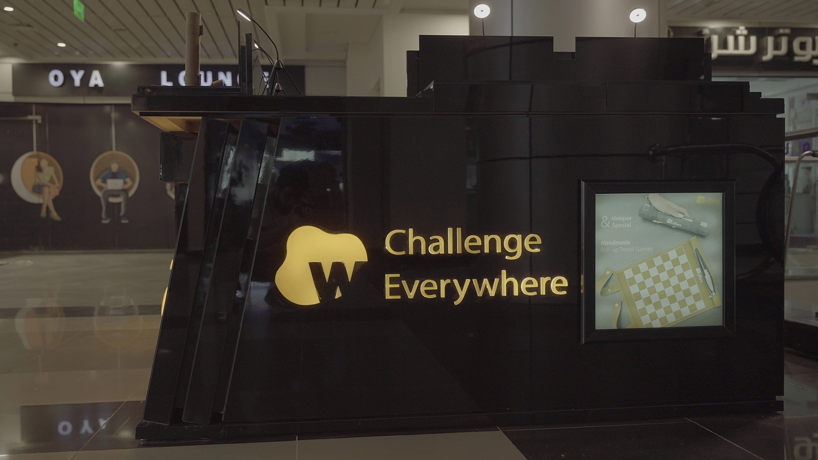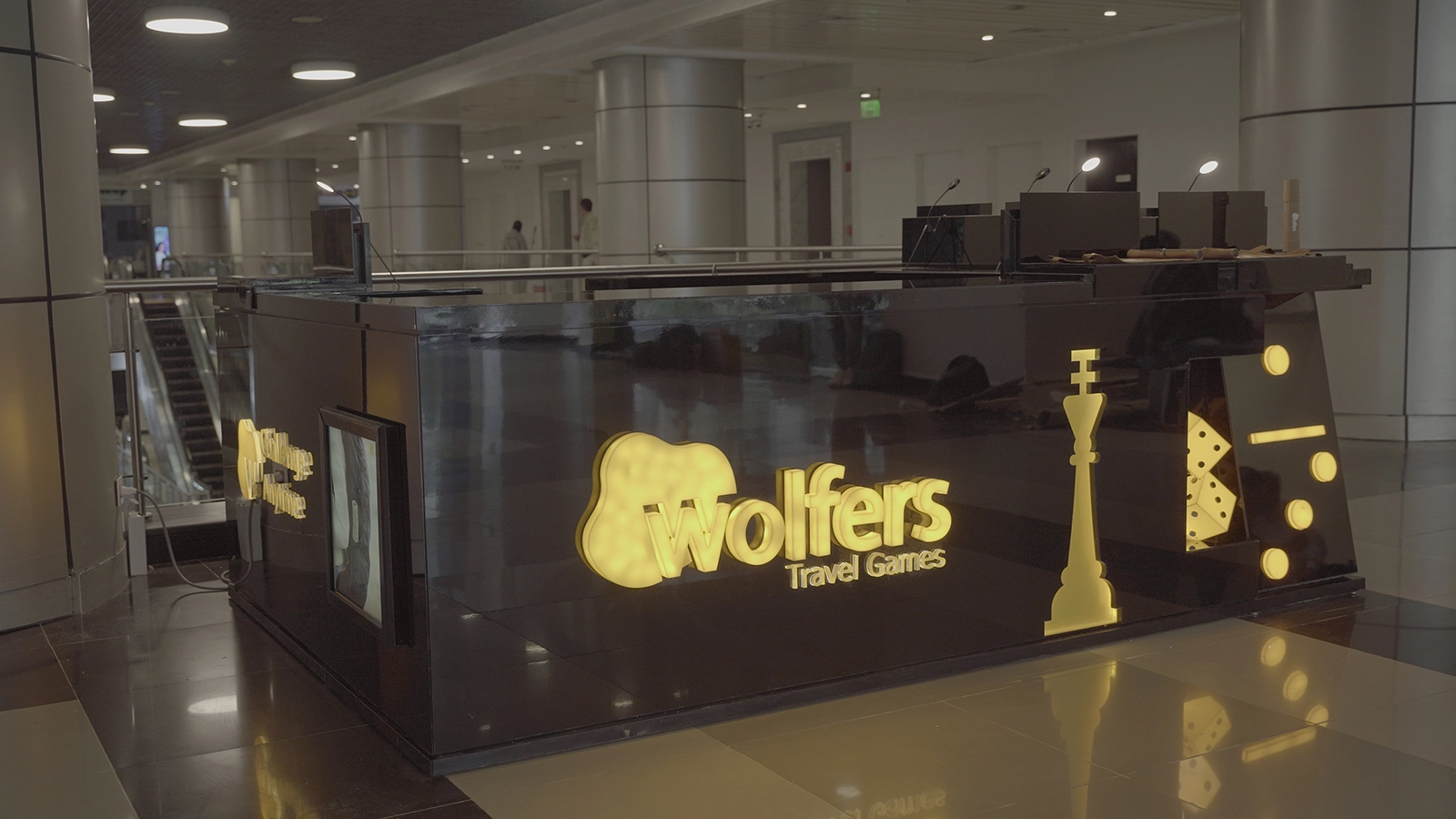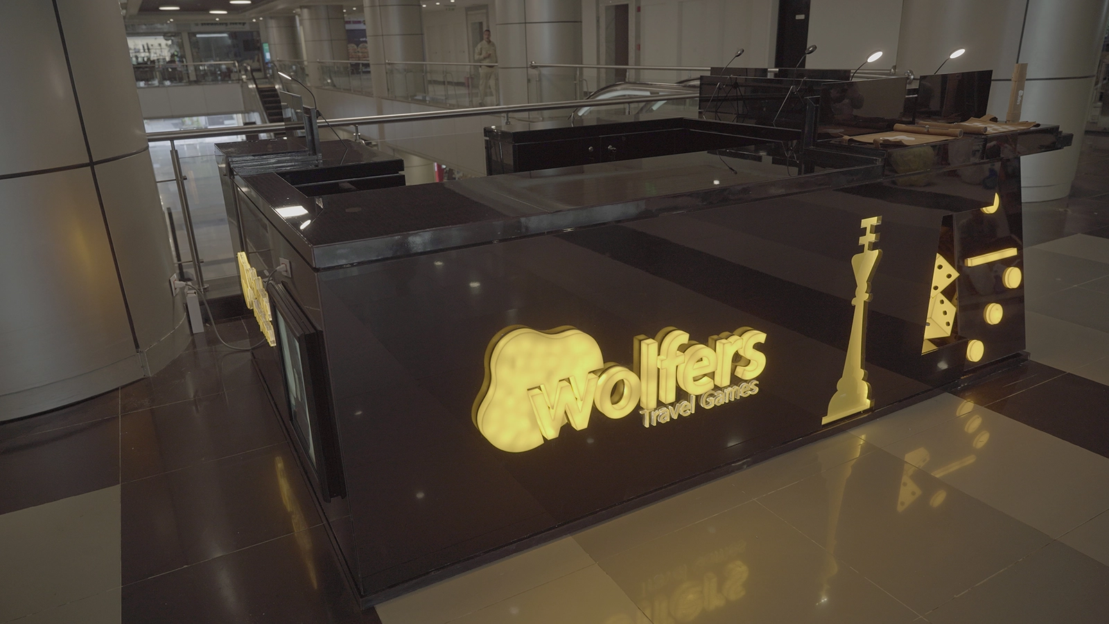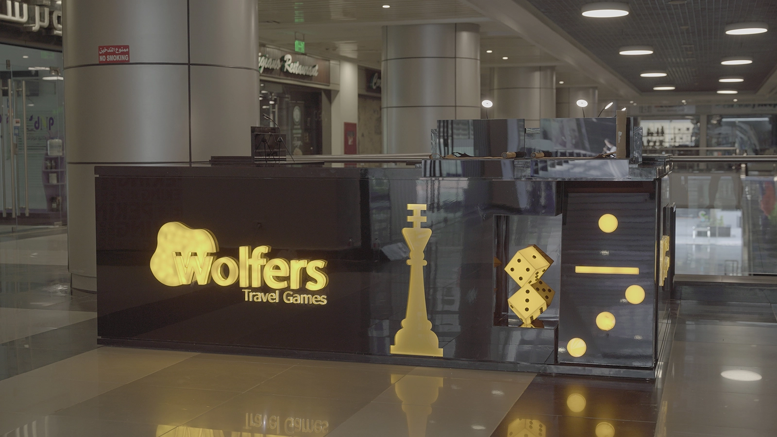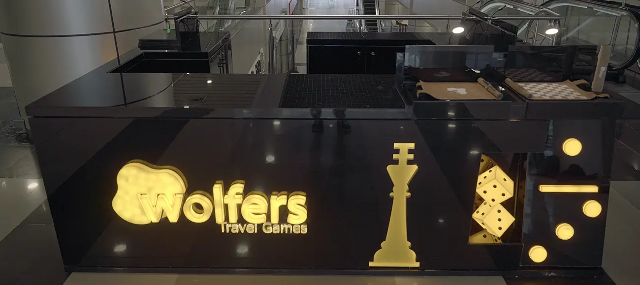 The objective was to create a sleek, modern, and inviting booth that reflects the brand identity. The dark color scheme with gold accents gives it a touch of elegance, while the prominent display of games suggests a playful and engaging experience.