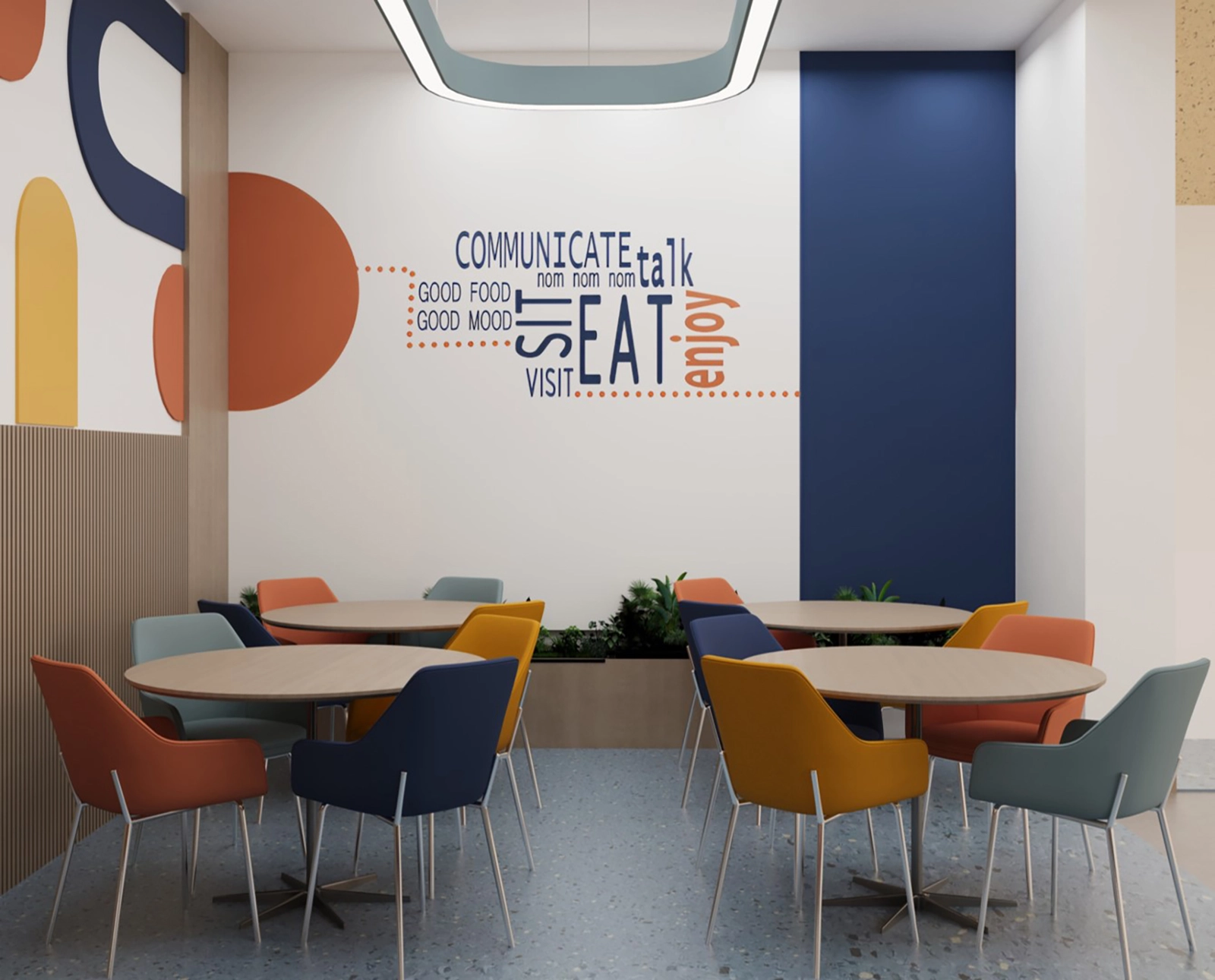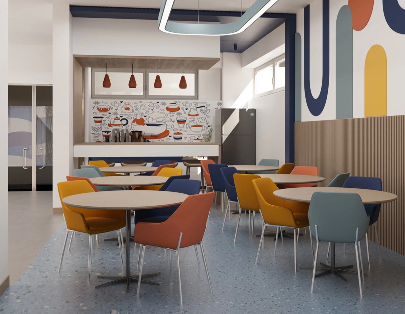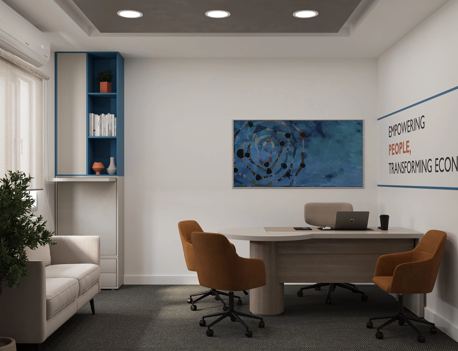 For Bashar Soft, the mother company of Wuzzuf and Forasna, we reimagined their office to reflect energy, creativity, and seamless communication. As part of our Office Interior Design Portfolio in Egypt, the renovation of the shared basement area offers a dynamic space for guests, events, and informal meetings. We used vibrant, energy-boosting colors to create an environment that feels both alive and productive. Acoustic walls ensure a noise-free experience while emphasizing the brand's identity, making this office a hub of creativity and collaboration.