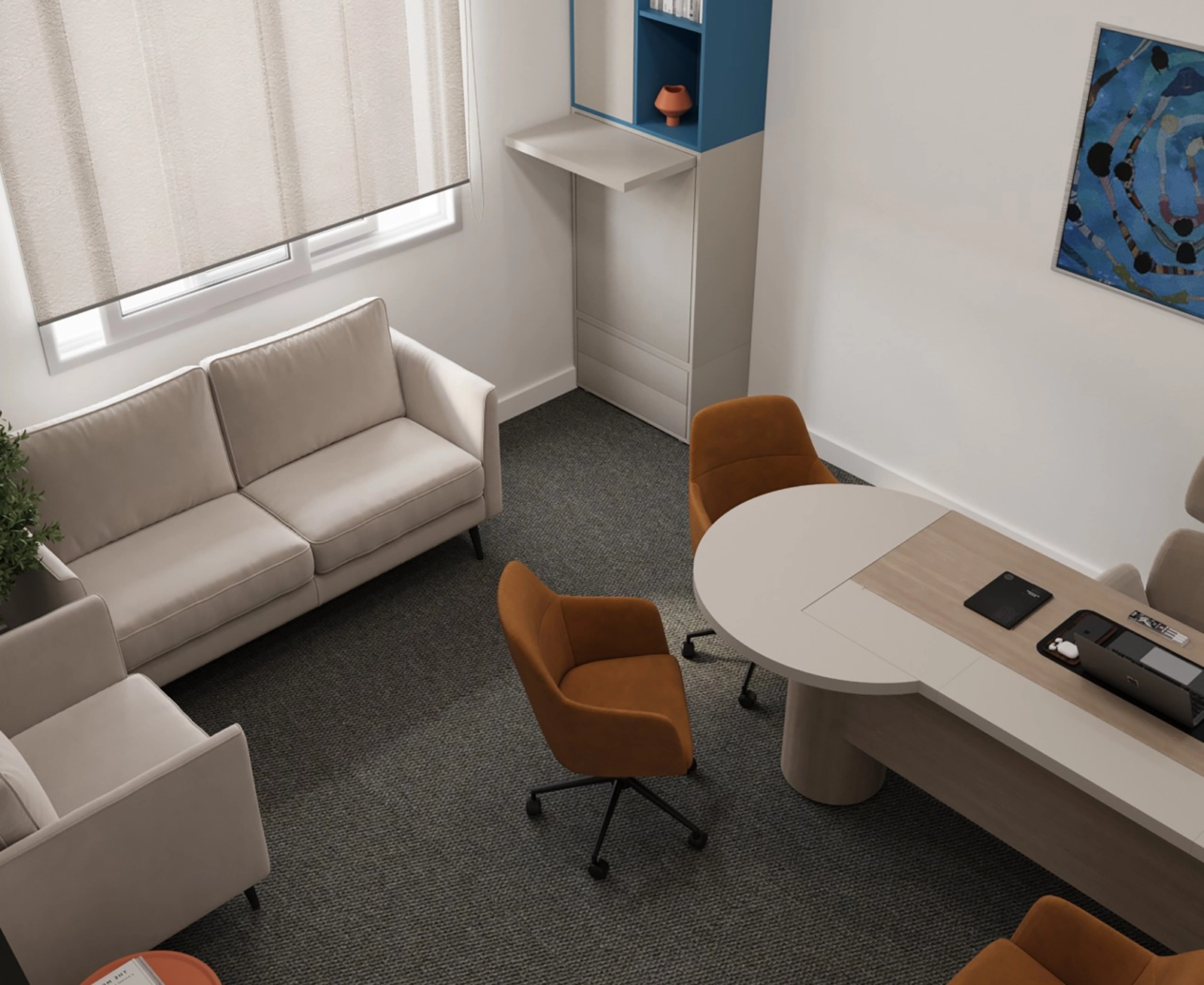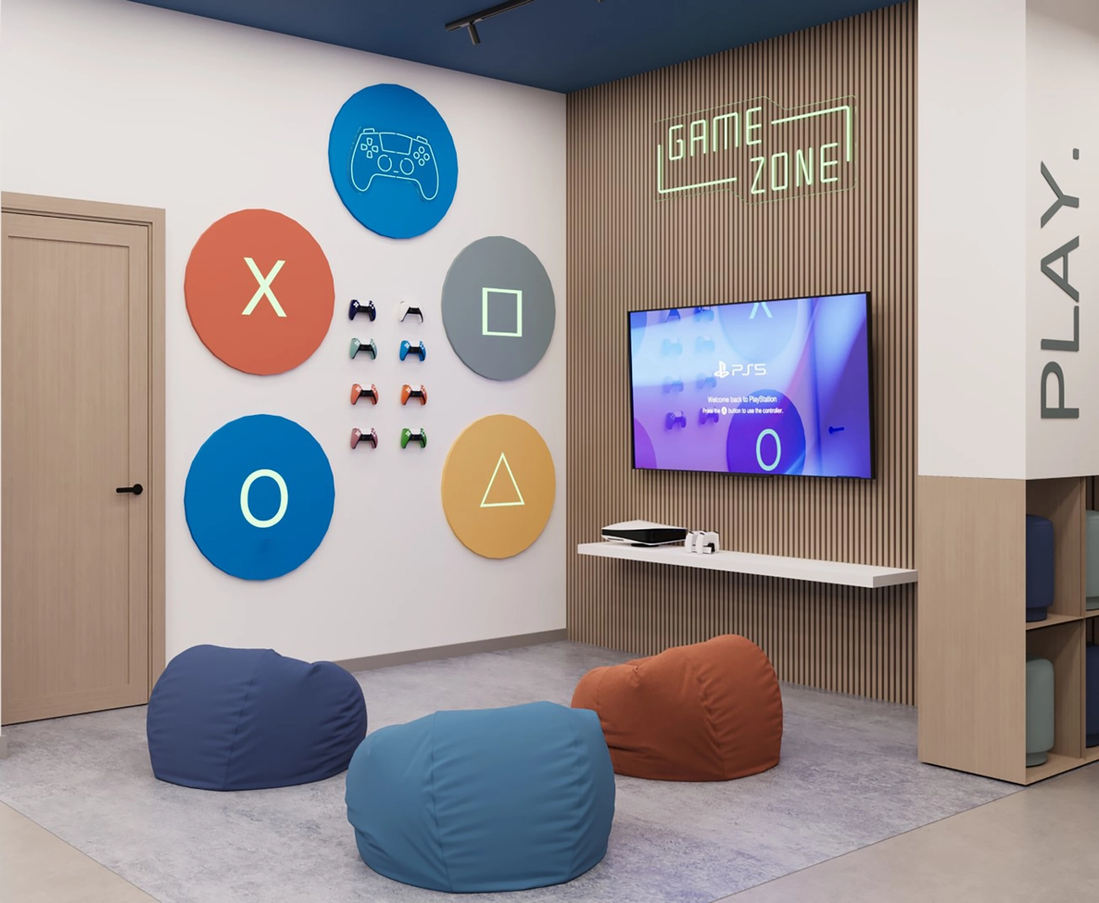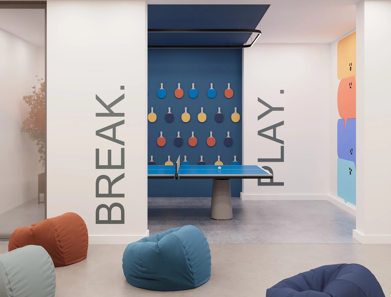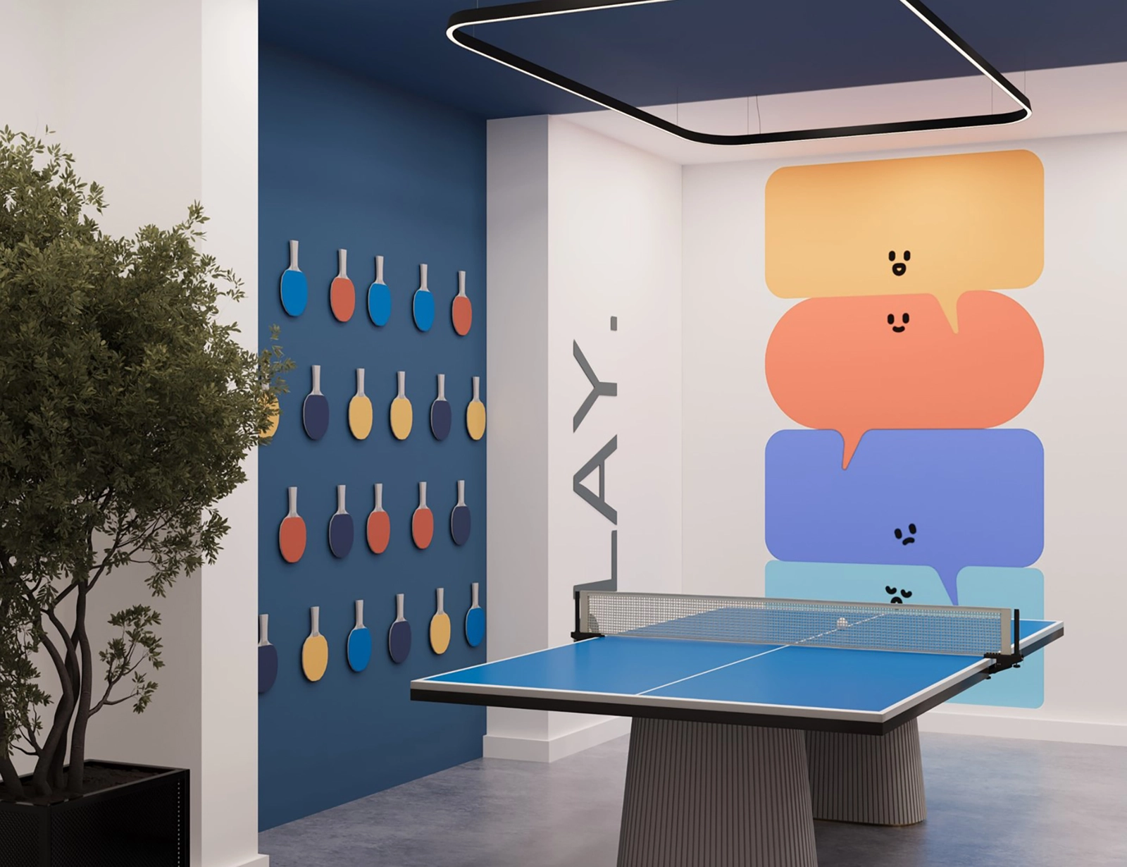 For Bashar Soft, the mother company of Wuzzuf and Forasna, we reimagined their office to reflect energy, creativity, and seamless communication. As part of our Office Interior Design Portfolio in Egypt, the renovation of the shared basement area offers a dynamic space for guests, events, and informal meetings. We used vibrant, energy-boosting colors to create an environment that feels both alive and productive. Acoustic walls ensure a noise-free experience while emphasizing the brand's identity, making this office a hub of creativity and collaboration.