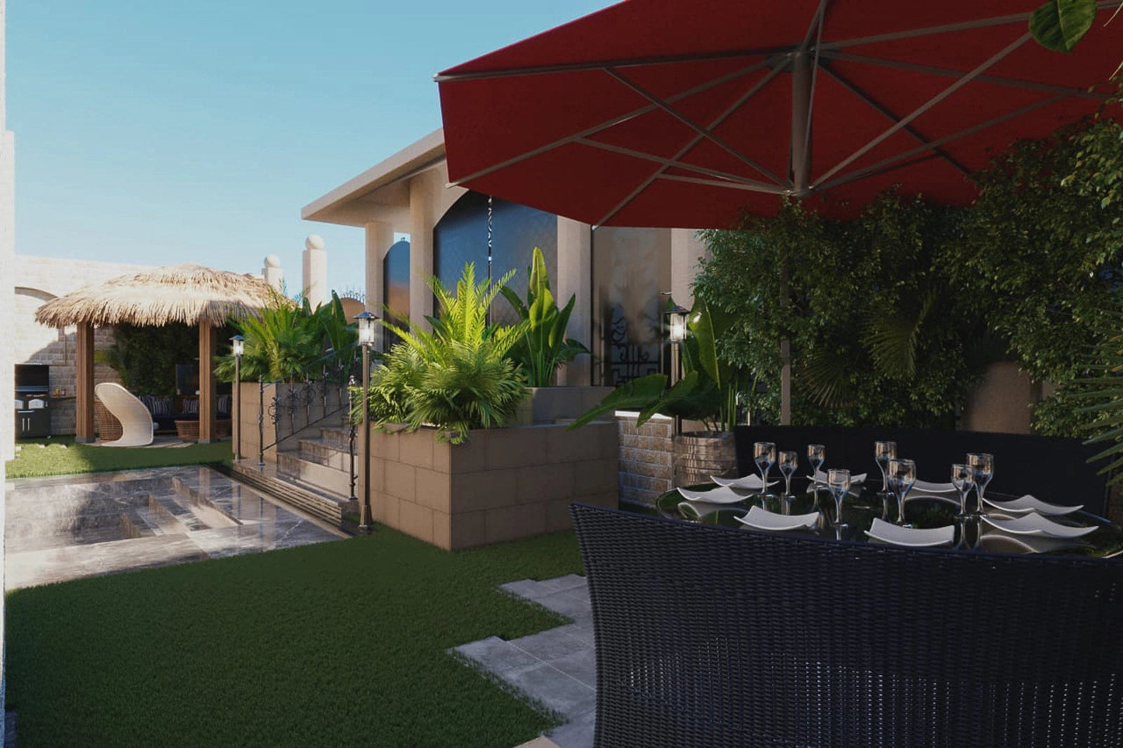 As part of Sketchure’s garden design inspiration in Dreamland, this full landscape project goes beyond the garden — seamlessly integrating natural elements, outdoor architecture, and modern comfort. Designed to create harmony between nature and contemporary living, it delivers a serene yet functional environment that reflects Sketchure’s refined approach to luxury outdoor design.