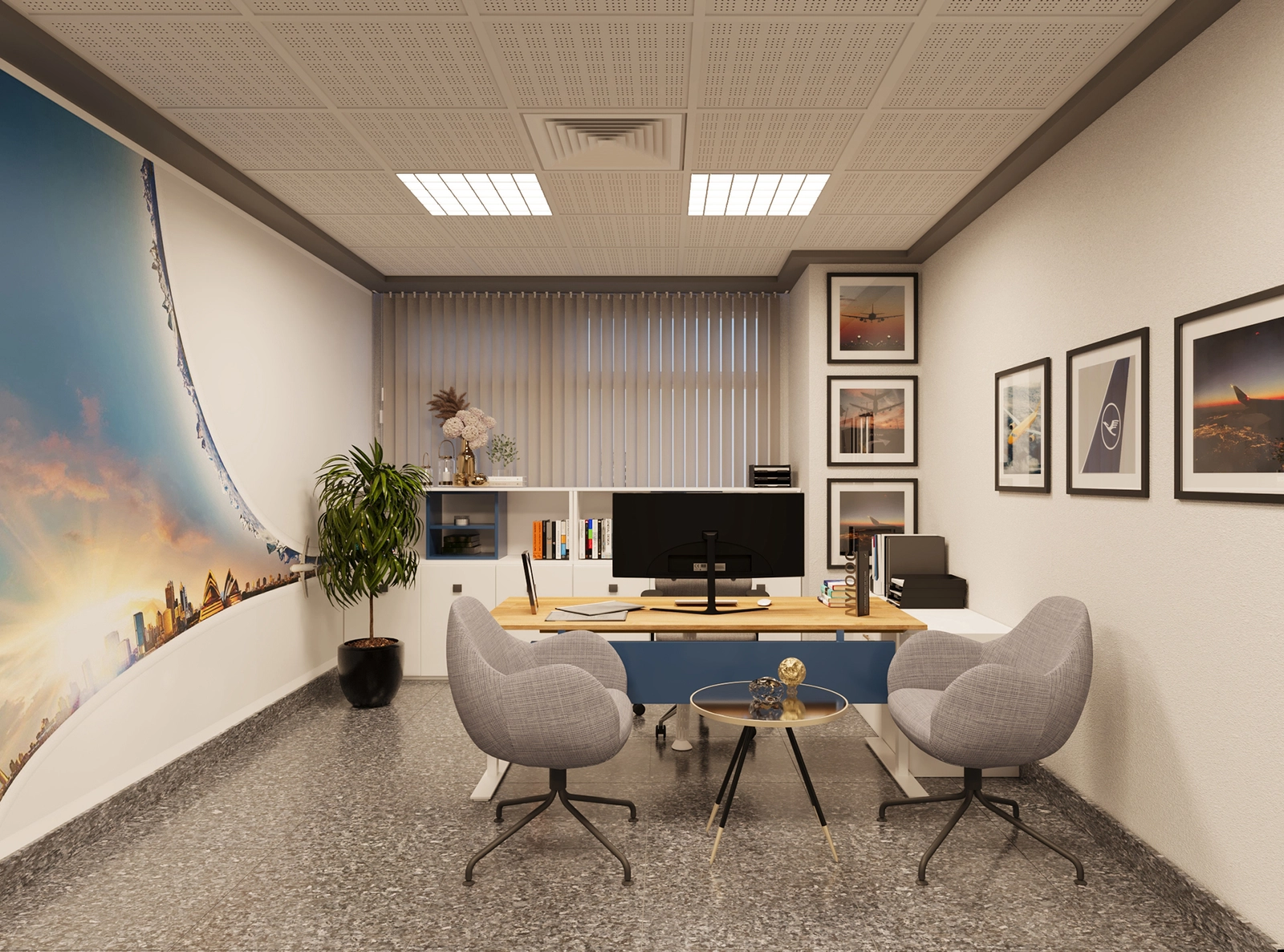 This project showcases SKETCHURE’s experience in delivering a low budget office interior design solution tailored for an operational airport environment. The Lufthansa Airport Office was designed to meet functional requirements while maintaining clarity, durability, and cost efficiency.