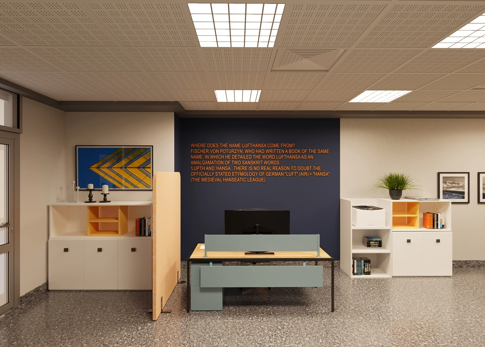 Every design decision prioritized usability, easy maintenance, and long-term performance, ensuring the office supports daily operations without unnecessary complexity, while still presenting a clean and professional work environment aligned with Lufthansa’s operational standards.