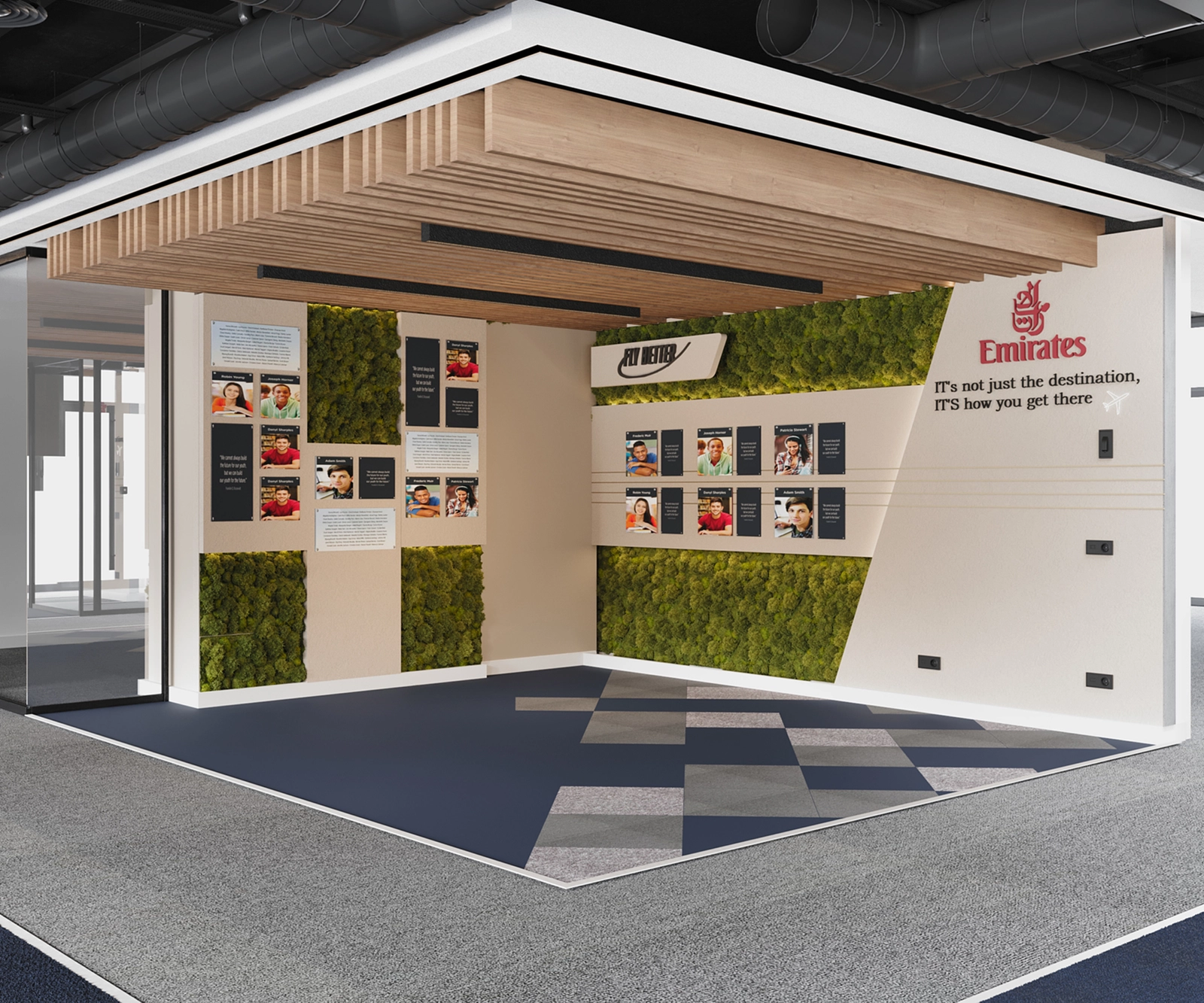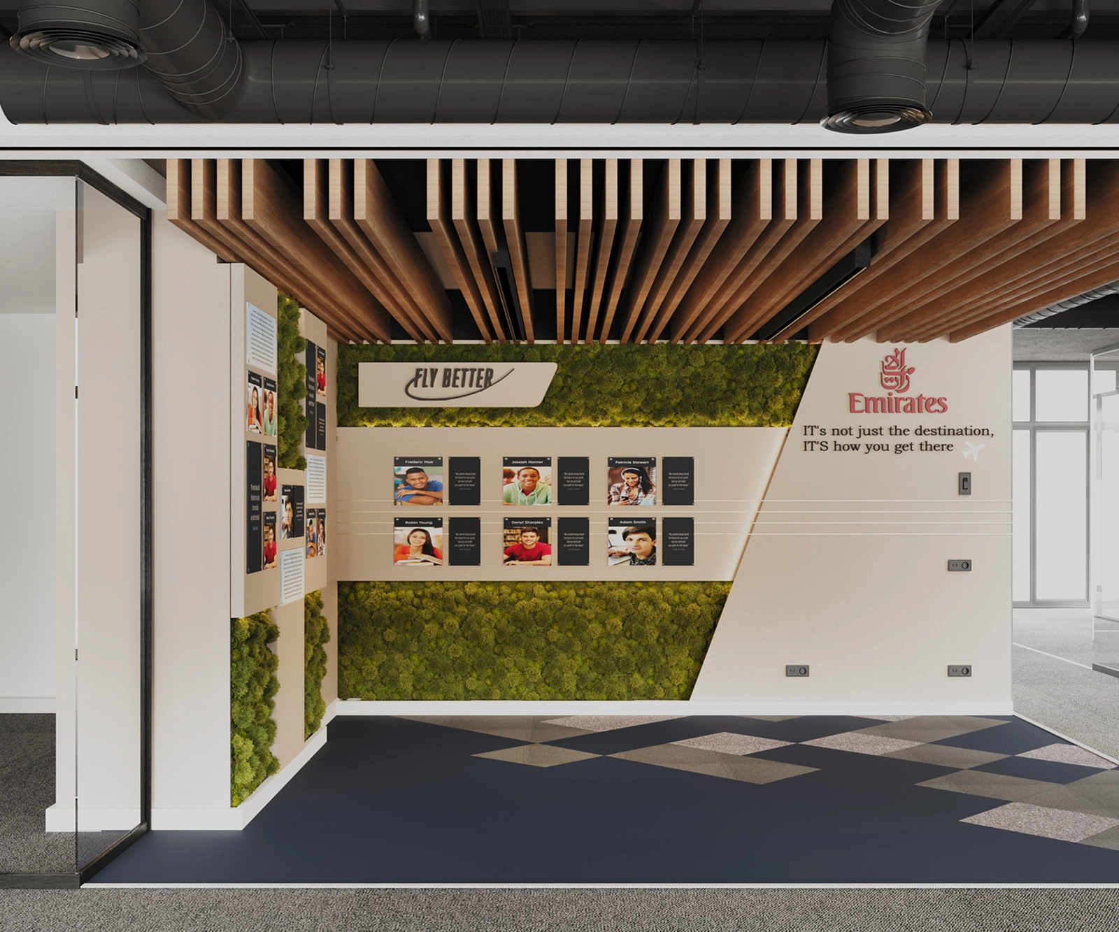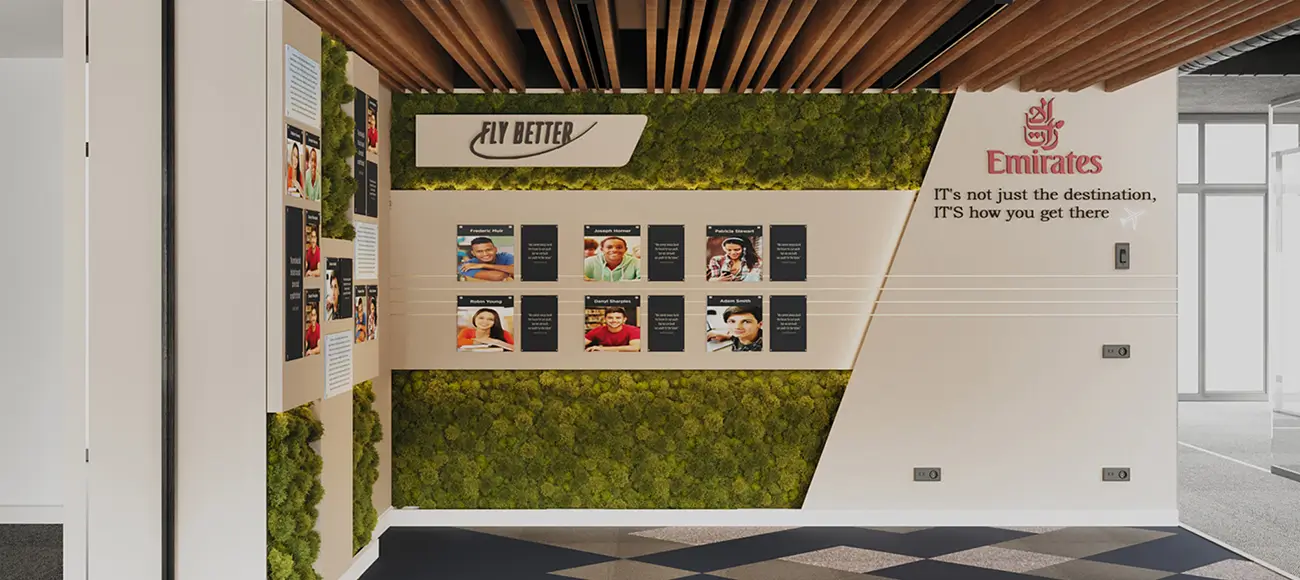 The concept in this project captures the experience of flight: light, fluid, and elevated, while staying grounded in functionality. As part of our Retail Store Interior Design Portfolio, elements like ‘window flight’ wall features imitate the in-air experience, complemented by built-in whiteboards, pin boards, and smart storage to support a smooth day-to-day workflow.