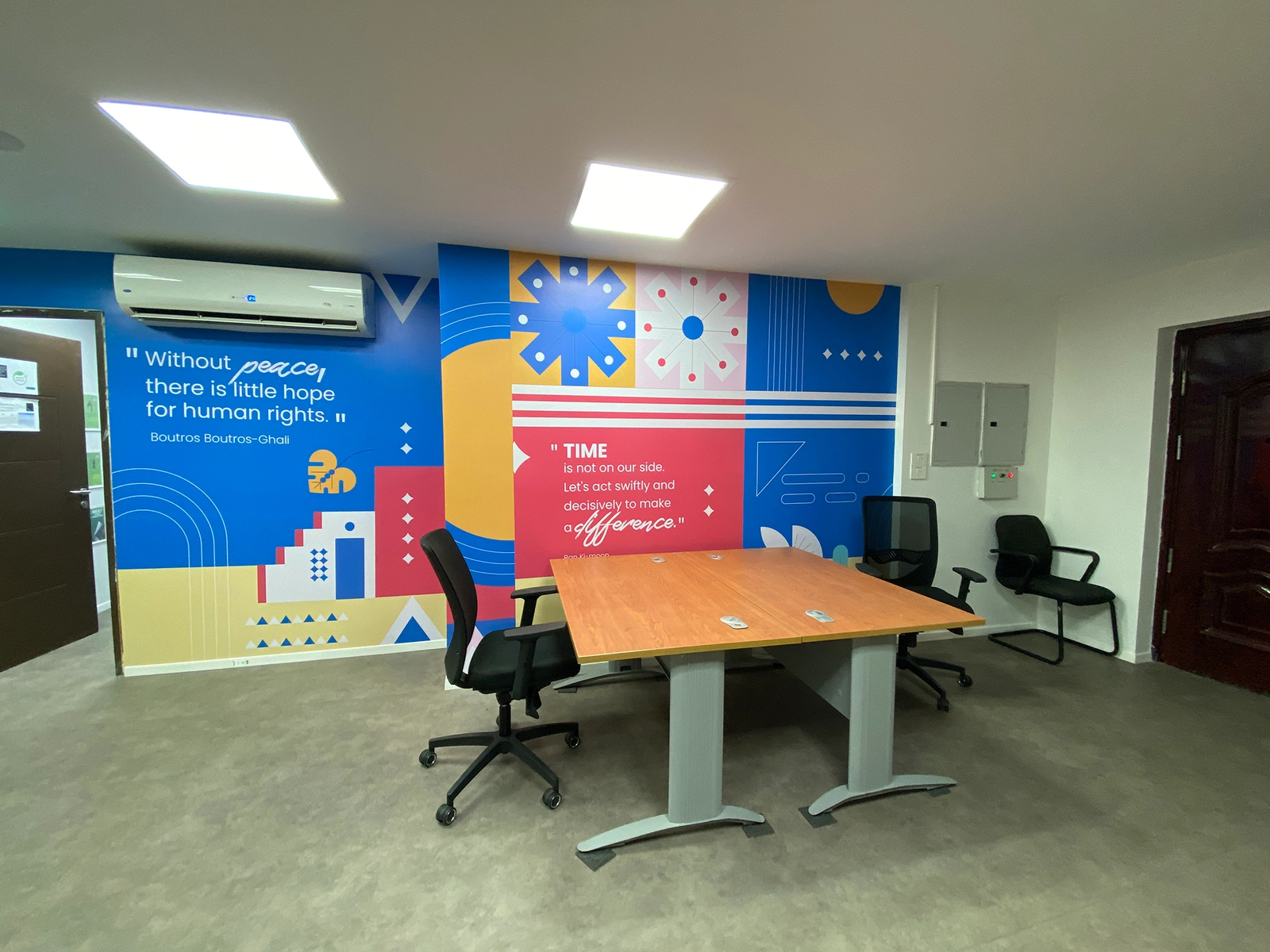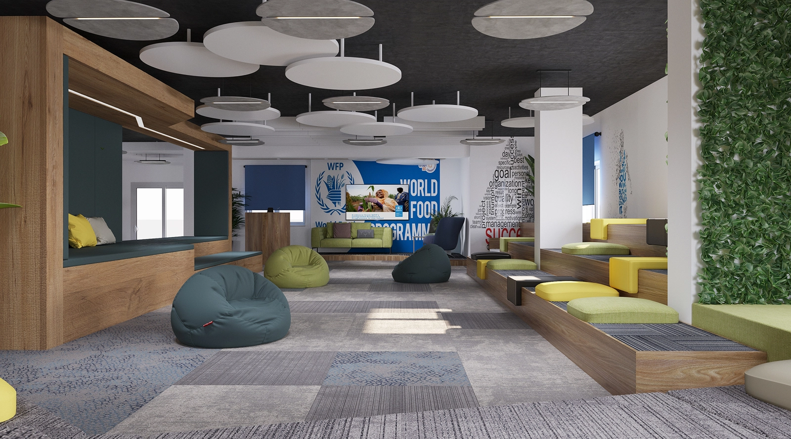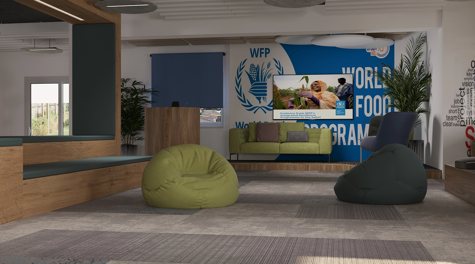 Part of Sketchure’s Interior Design Project Management portfolio, the World Food Program design centers on the concept of an “Oasis,” creating a calming, natural workspace. Quiet details, open spaces, and soothing tones foster productivity and well-being. If you want Sketchure to create a workspace like this — tailored, inspiring, and high-performing — contact us today!